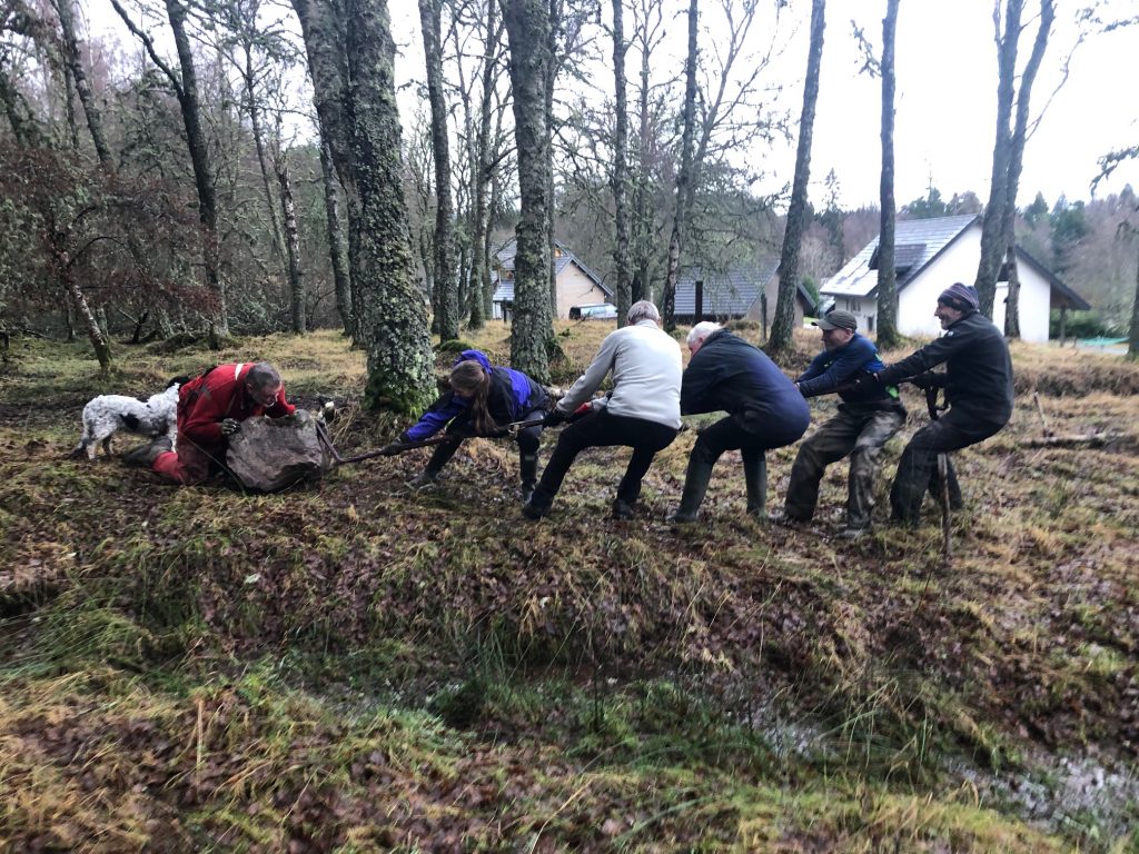 Sandy says “could you just move this stone over there…”.