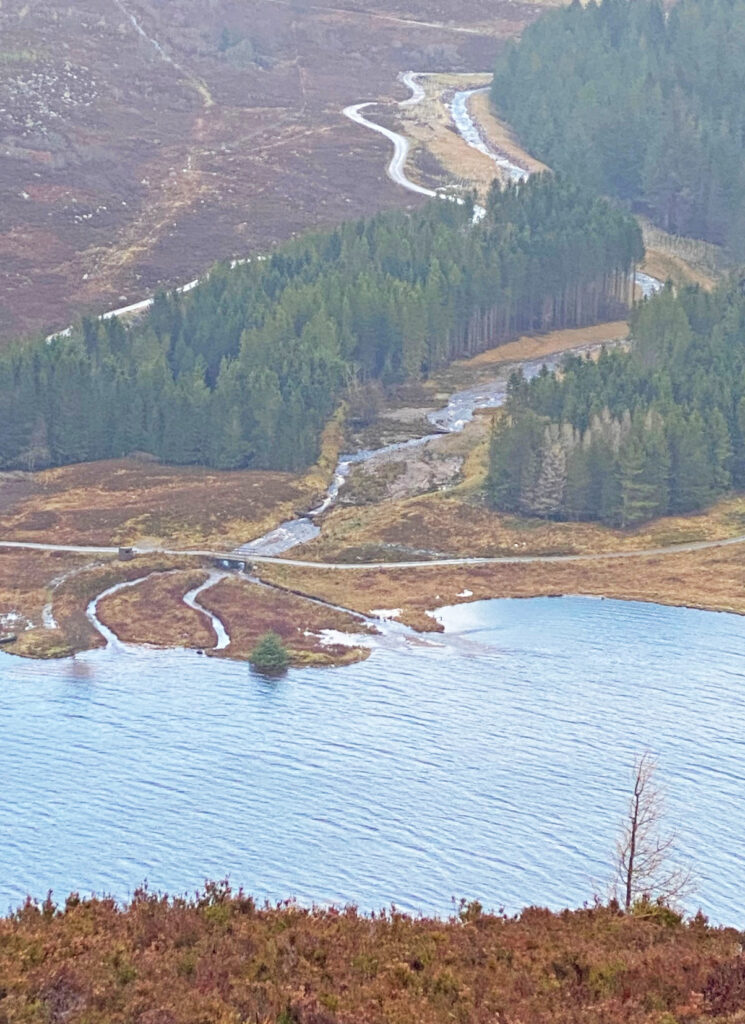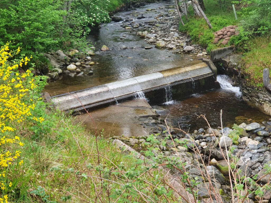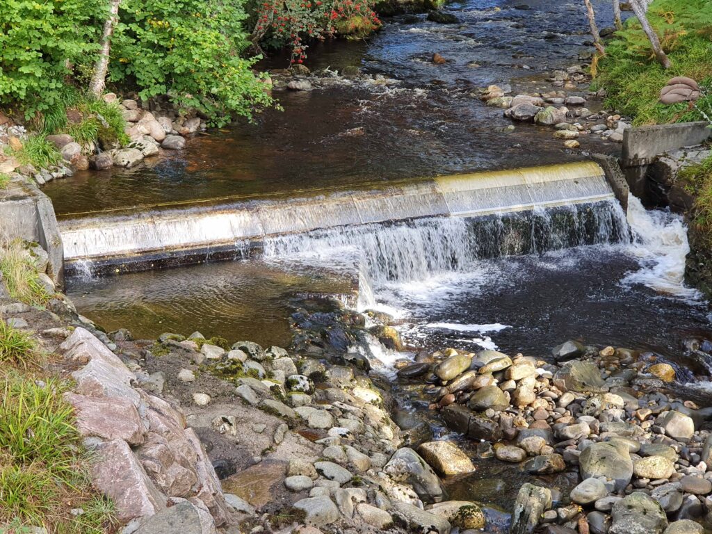 The level of the River Gynack at Kingussie can rise very quickly if there is heavy rain in hills behind. As well as potential flooding, this can result in large amounts of sediment including huge boulders being brought down. Following the damage caused by ex-hurricane Bertha in 2014, Pitmain Estate and Highland council initiated a flood alleviation scheme that could divert water into Loch Gynack to reduce peak flows. This scheme was finally commissioned in mid 2024 and has already improved the output of Kingussie Community Hydro. Once the hydro reaches maximum output any additional water cannot be used. Now after heavy rain showers, the flow is lower but continues for longer and more of the water can be used for generation.